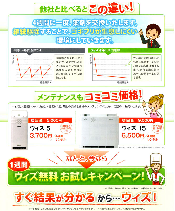 薬剤メーカーと提携したウィズは、薬剤ペーパーセクトと機械本体一対で日本初となる厚生労働省で承認された害虫駆除システムです。